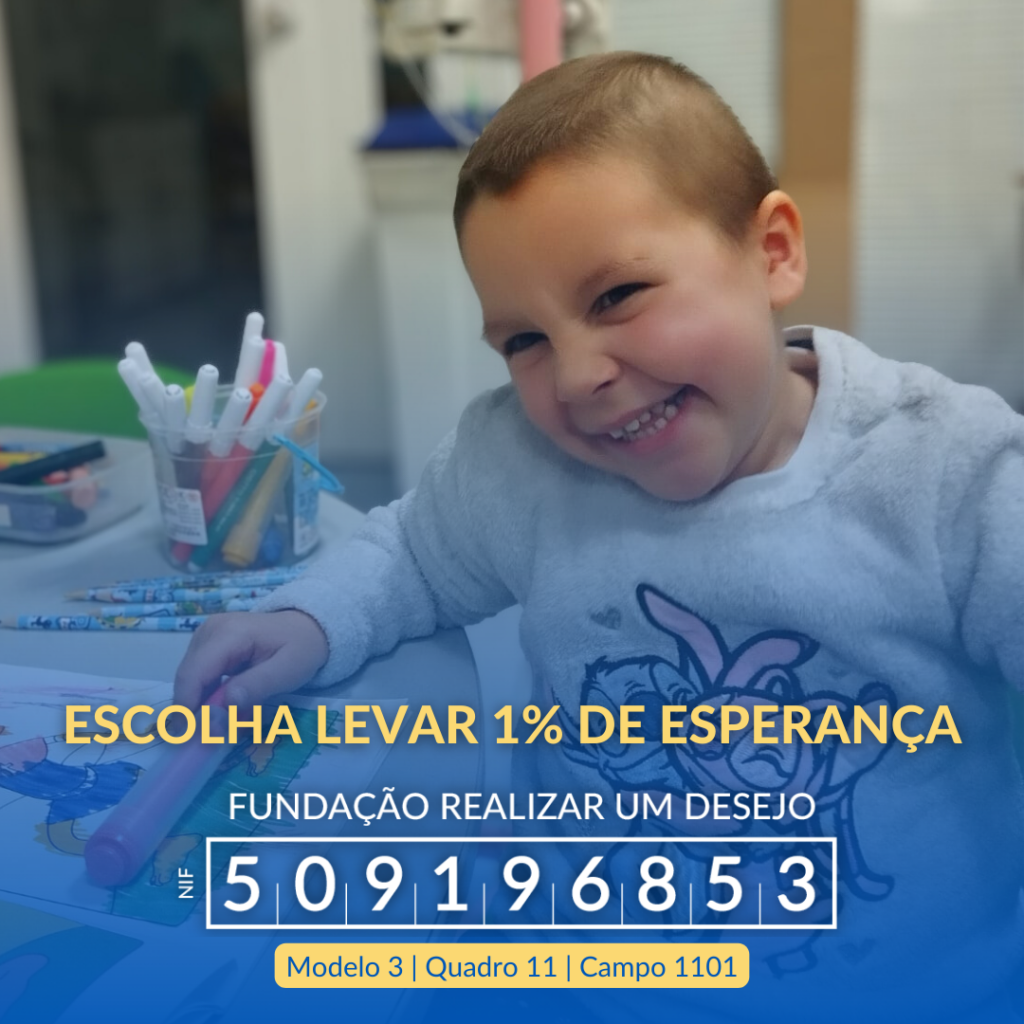 Ao consignar 1% do seu IRS à Make-A-Wish, está a apoiar a continuidade da nossa missão: acompanhar crianças e jovens gravemente doentes em todo o país e realizar desejos que transformam vidas.