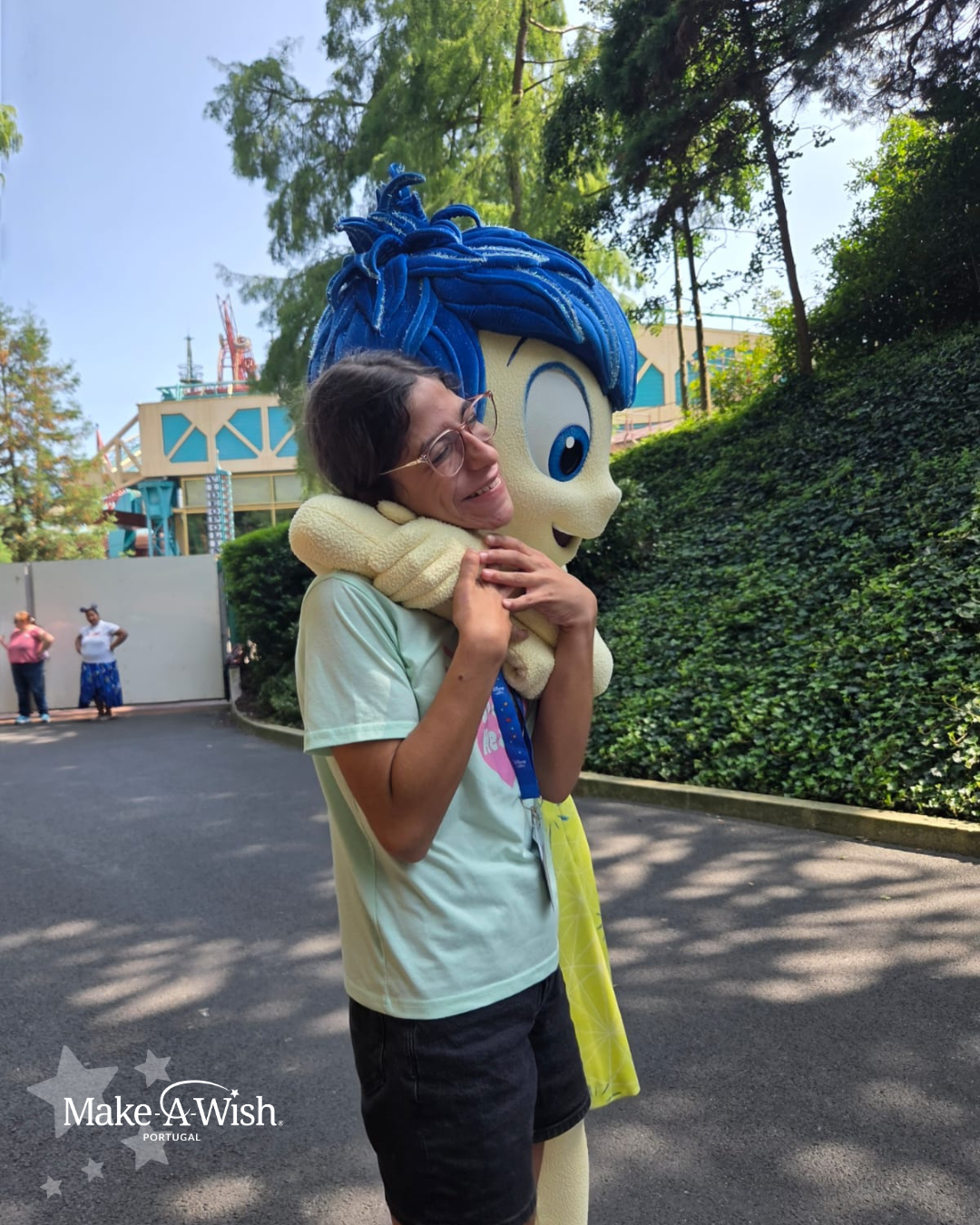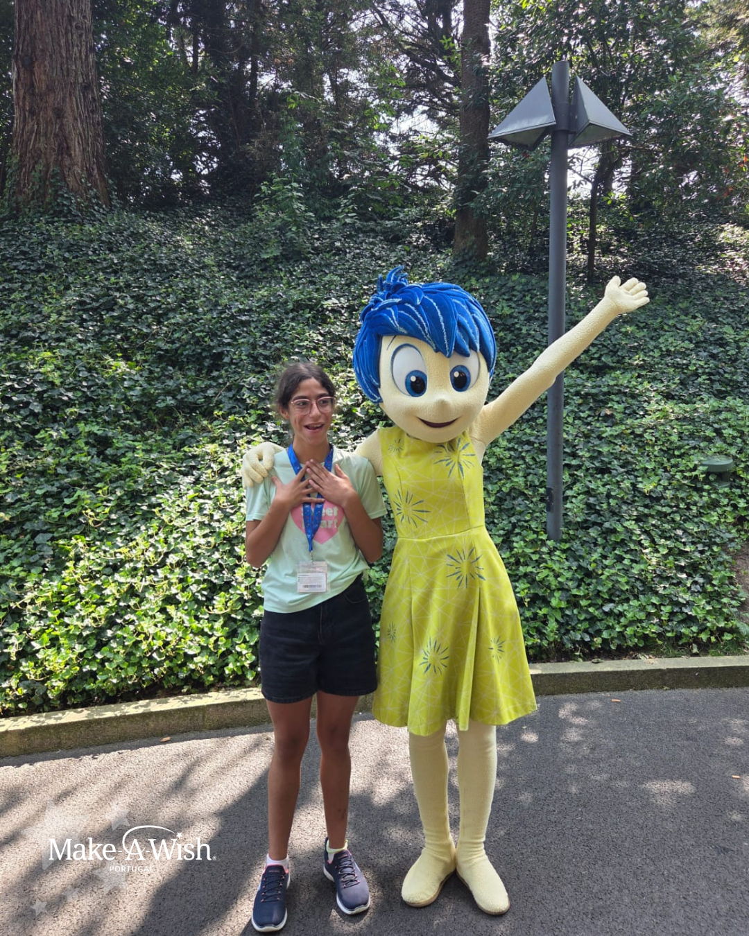 Conheceu os diferentes parques, experimentou todos os carrosséis e montanhas-russas que conseguiu e ainda teve a oportunidade de se cruzar com várias personagens! Um dos momentos mais especiais foi o encontro com a sua personagem favorita – a Alegria do Divertidamente – que a recebeu carinhosamente. A Alice deu-lhe um grande abraço e tirou muitas fotografias para poder recordar este momento tão especial mais tarde.