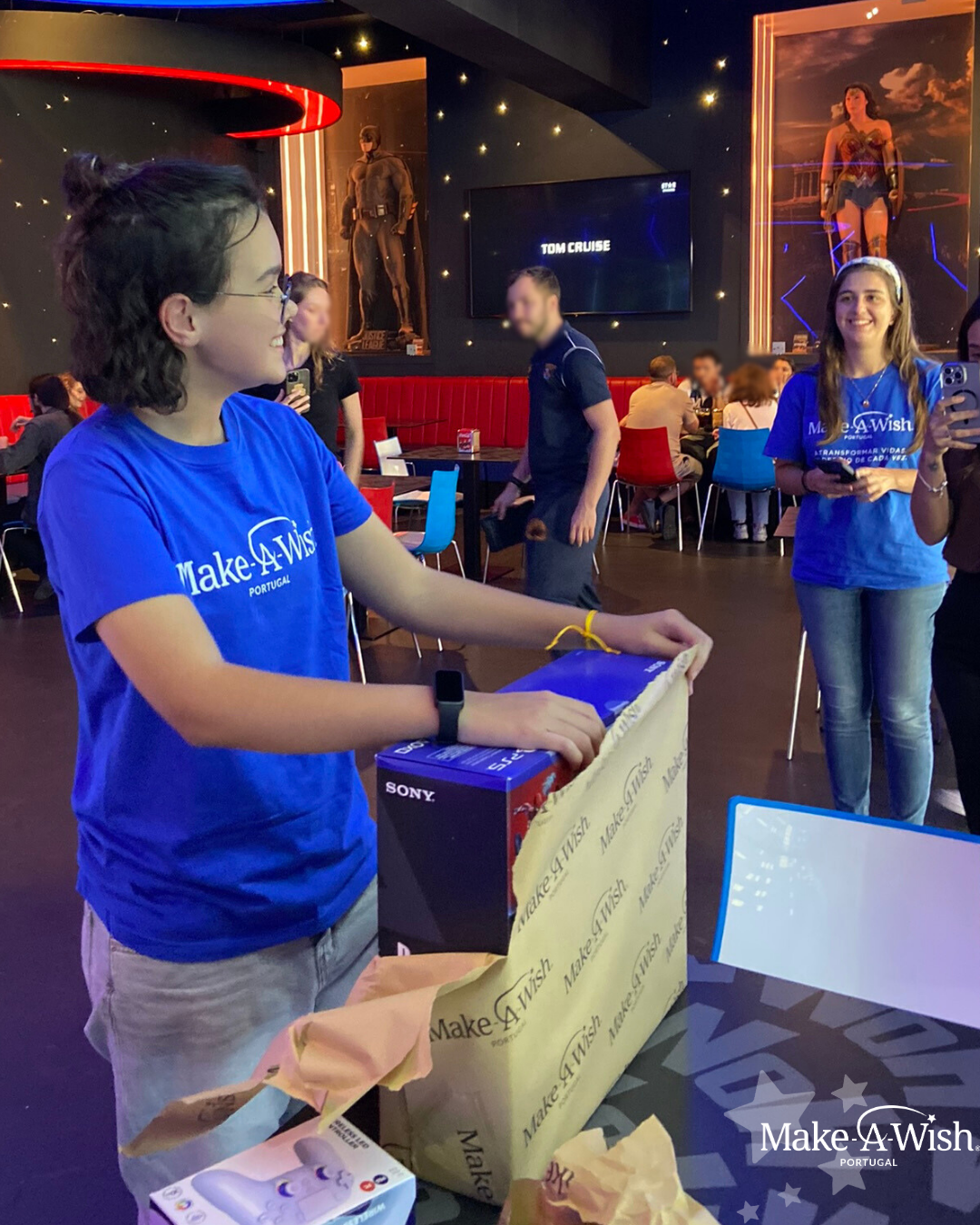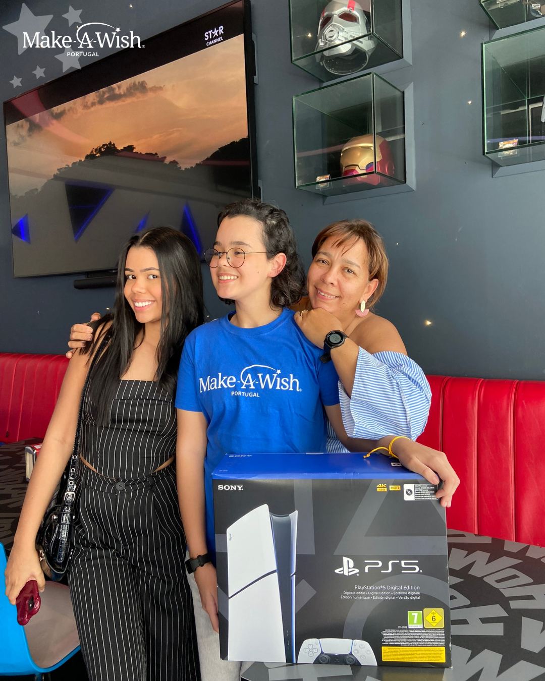 “A Aysha é uma jovem muito querida e amorosa, e foi um prazer acompanhá-la neste dia tão especial! Encheu-nos o coração quando ela nos disse que estava a ter “o dia perfeito” de que sempre imaginou. Foi uma sensação de missão cumprida, e viu-se bem no seu sorriso e em como se emocionou. Tanto tremia de felicidade quando recebeu a sua consola, nem podia acreditar! Resta-nos desejá-la que continue a divertir-se a jogar com toda a família!”