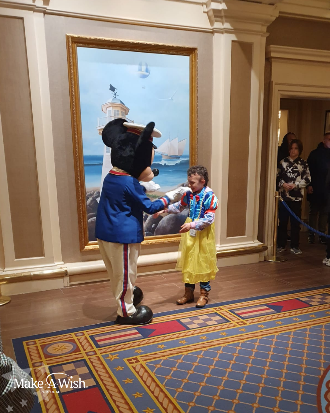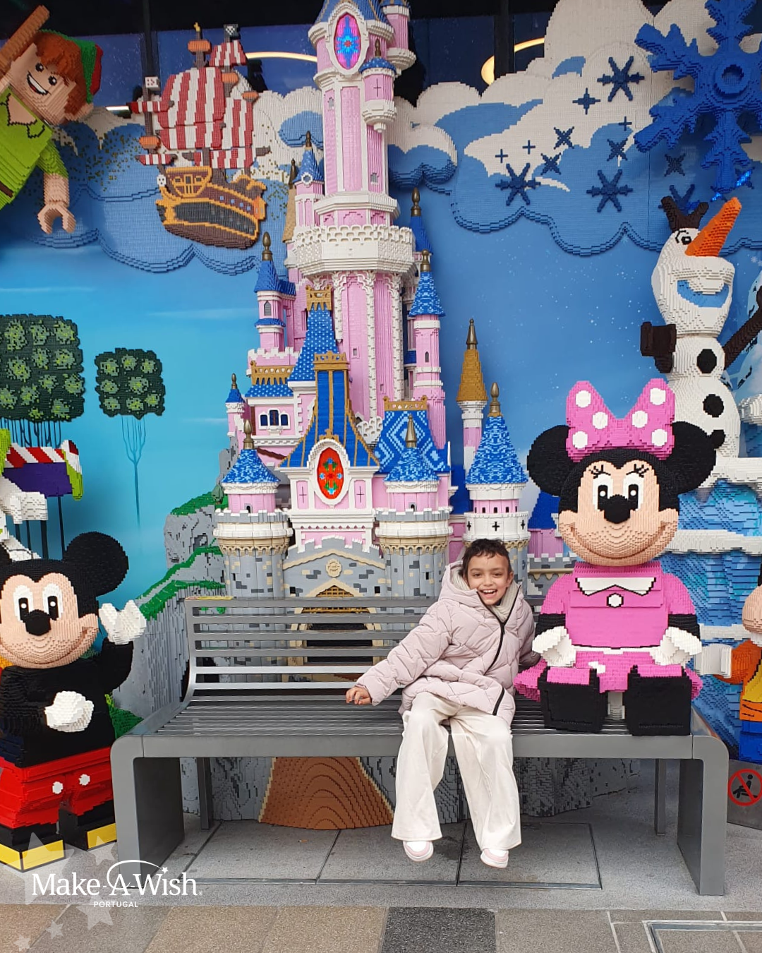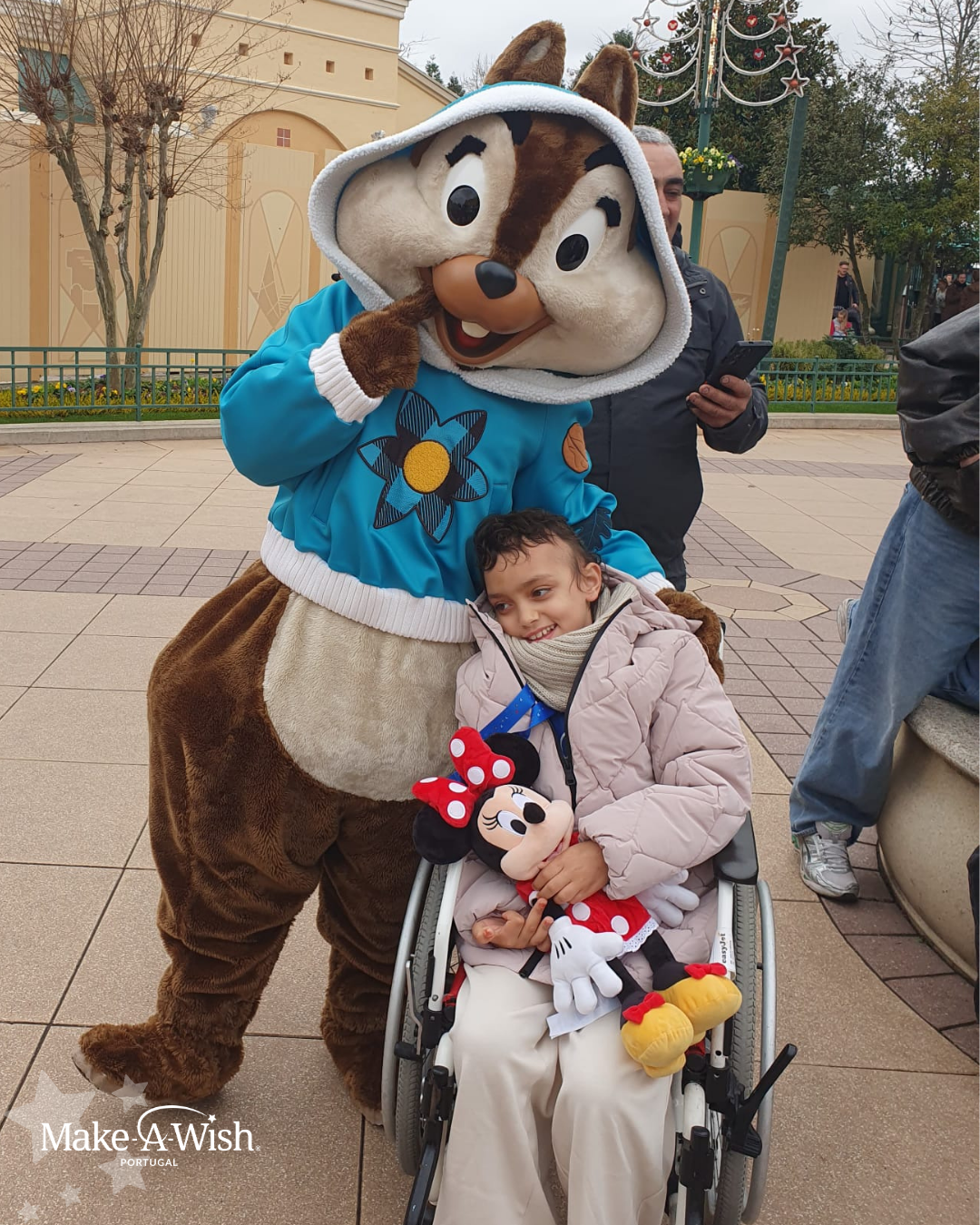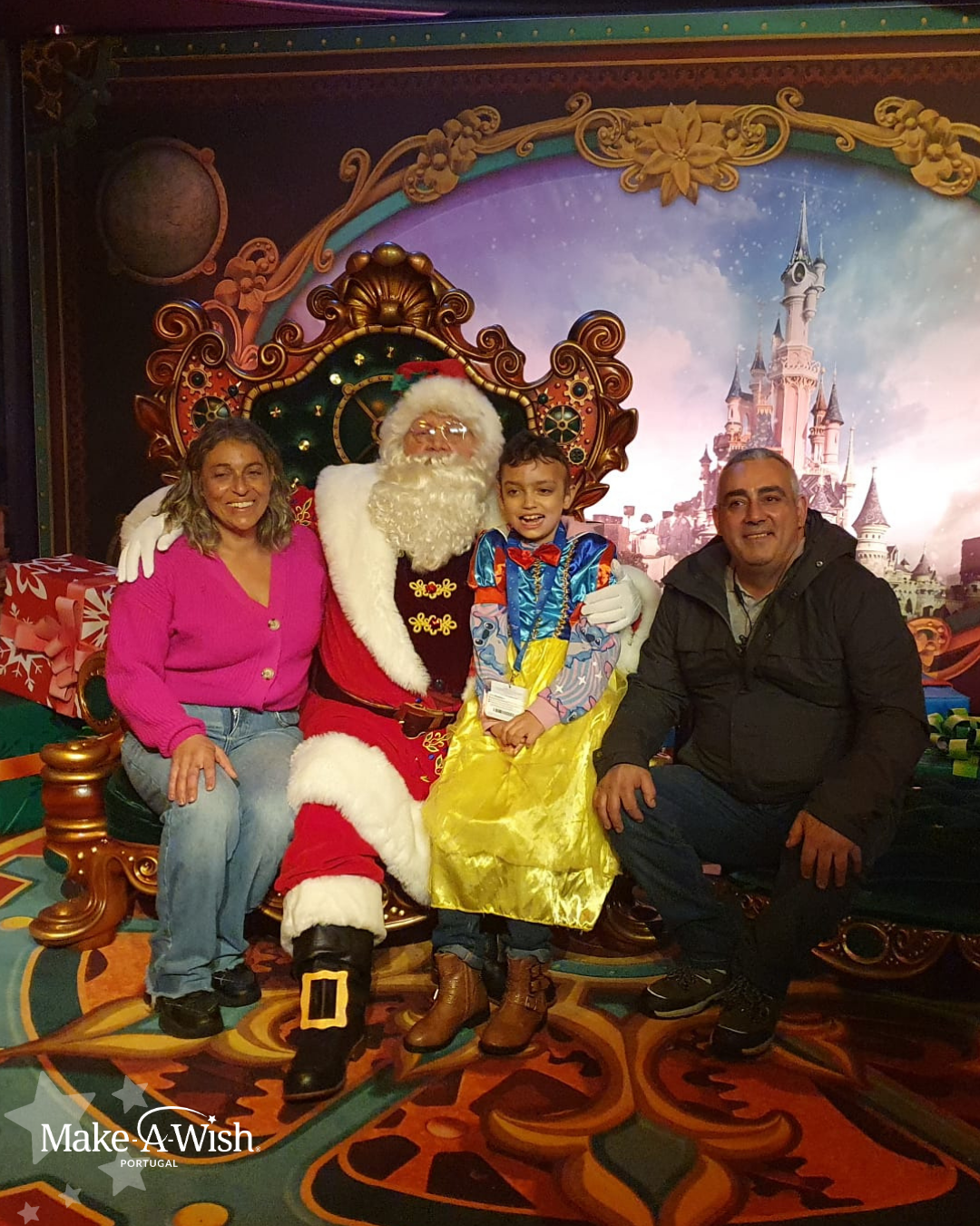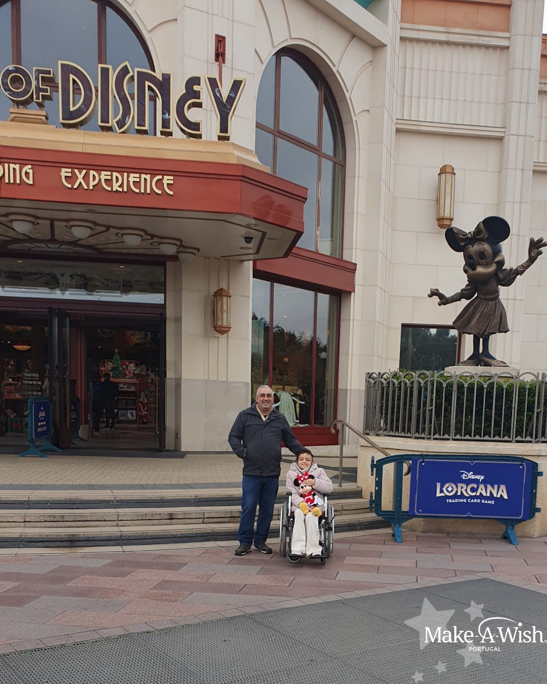“A Bruna adorou! Já não queria deixar a sua “nova casinha”. Correu tudo muito bem. Foi um sonho espetacular! A voluntária foi incrível, organizou tudo direitinho, conseguimos explorar tudo no parque. A parte favorita foi conhecer o Mickey e a Minnie! No dia em que regressamos, ela ainda estava muito excitada. Mostra as fotos e vídeos da viagem a toda a gente. Foi toda contente para a escola, contar aos amigos e à professora. Disse à professora que foi o maior sonho que teve!”