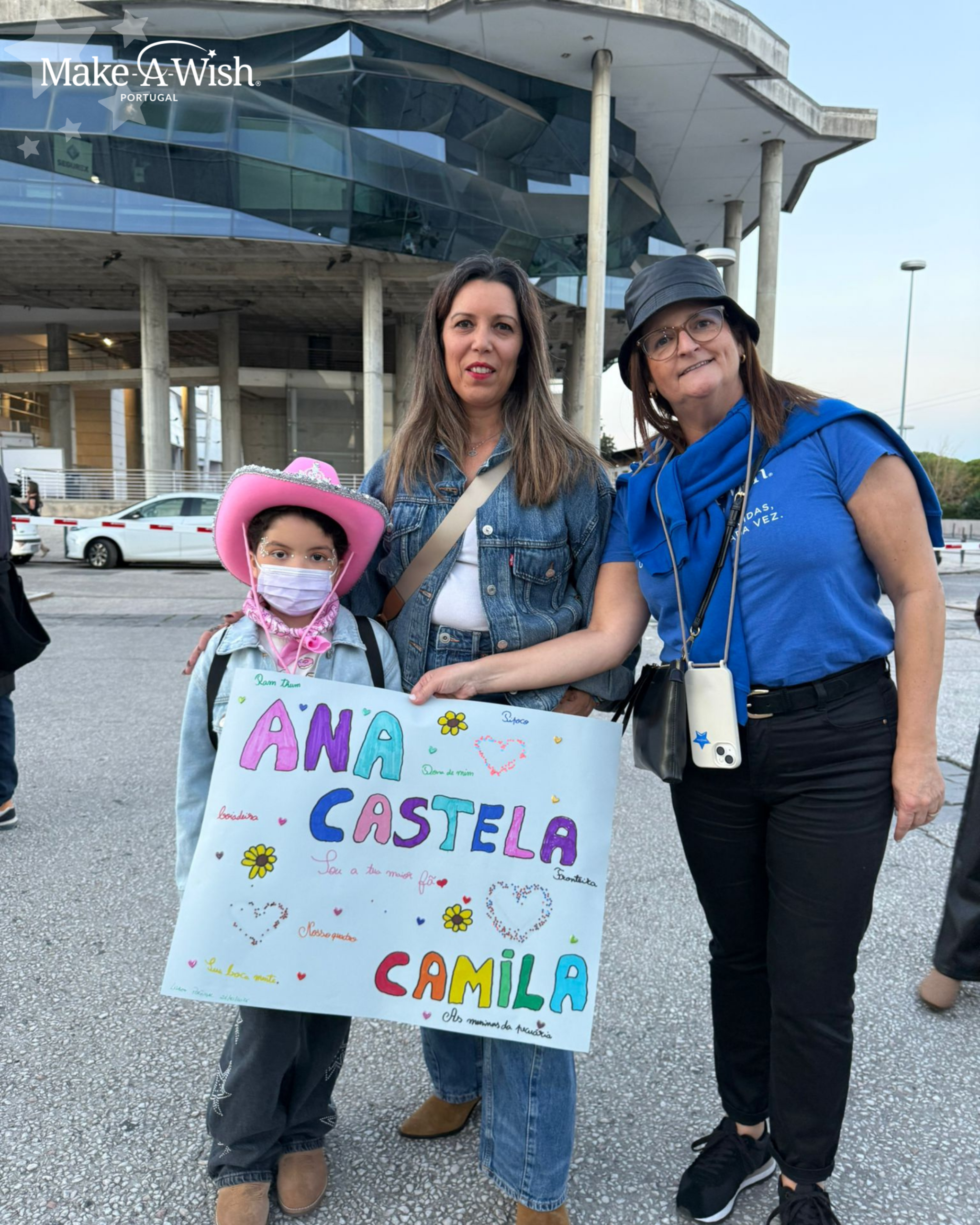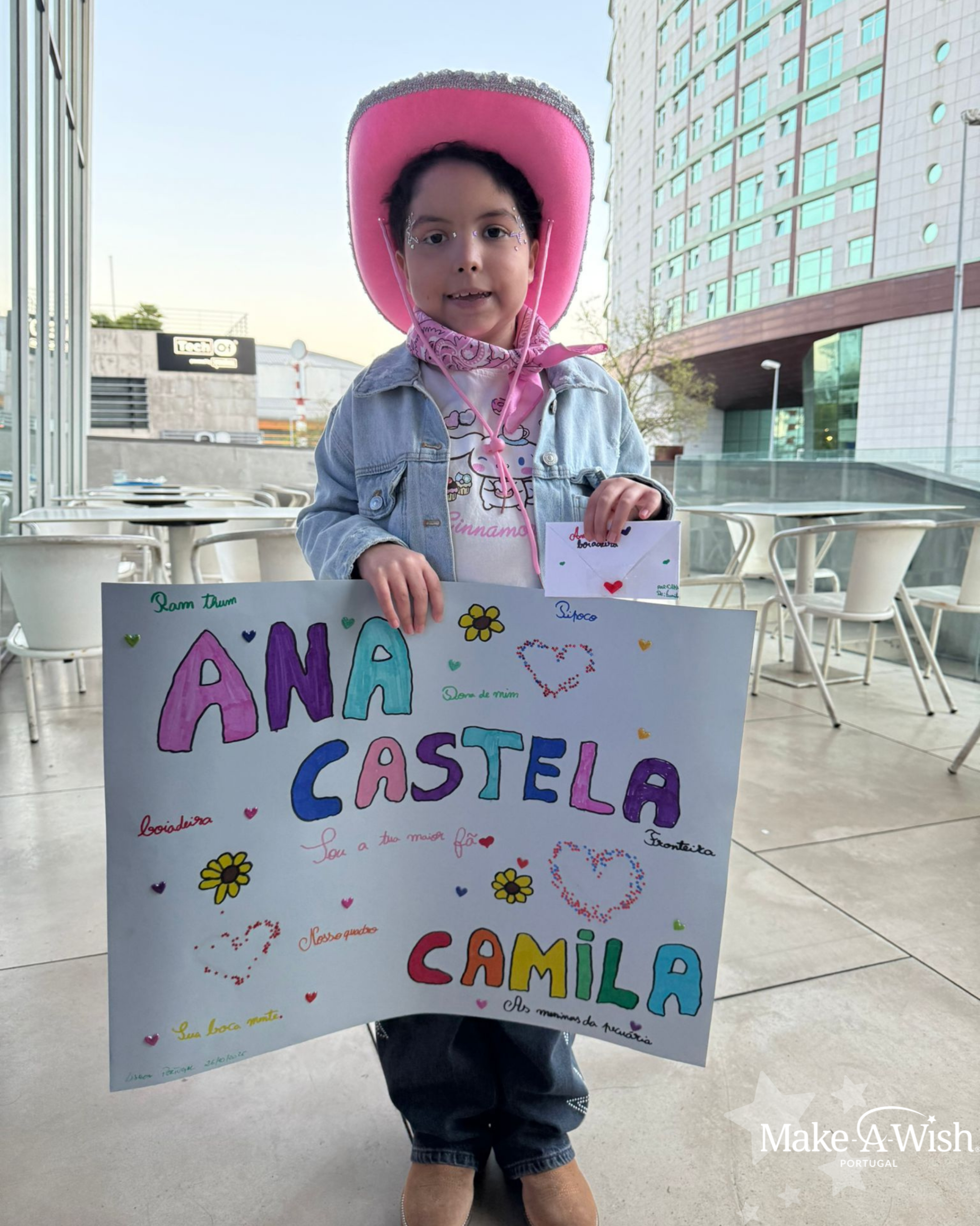 A Camila é uma menina sorridente, apaixonada por música! É uma das maiores fãs da Ana Castela – conhece todas as suas músicas e adora ouvi-las! Trazem-lhe sempre um sorriso e transportam-na para universos de alegria, esperança e tranquilidade. Assim, quando surgiu a oportunidade de realizar um desejo Make-A-Wish, a Camila soube, com toda a certeza, qual seria o seu desejo: ir a um concerto da Ana Castela!
