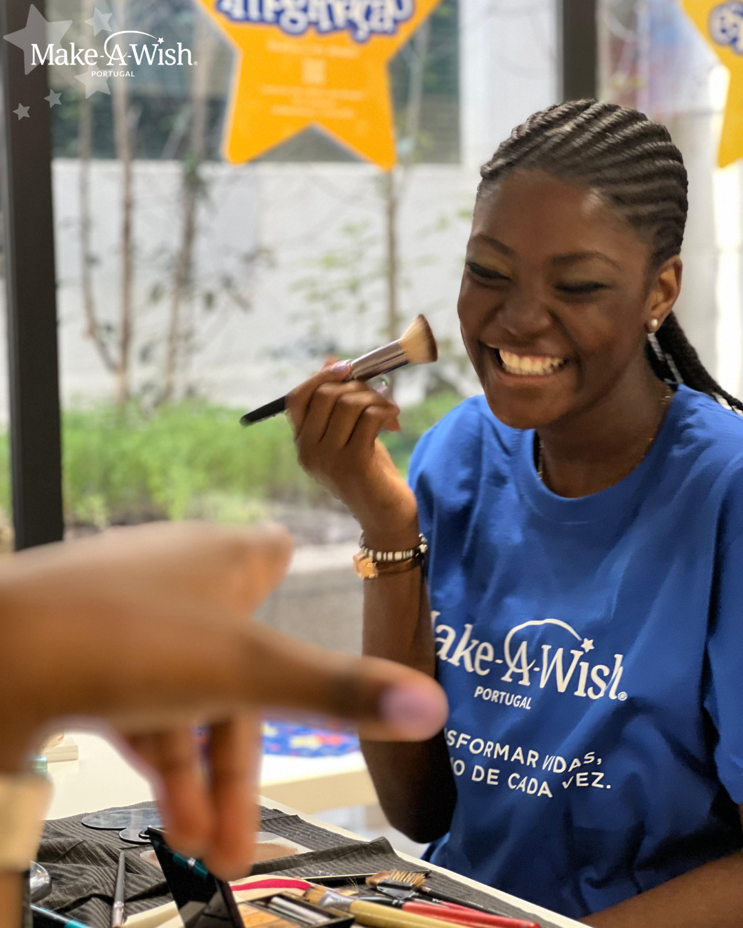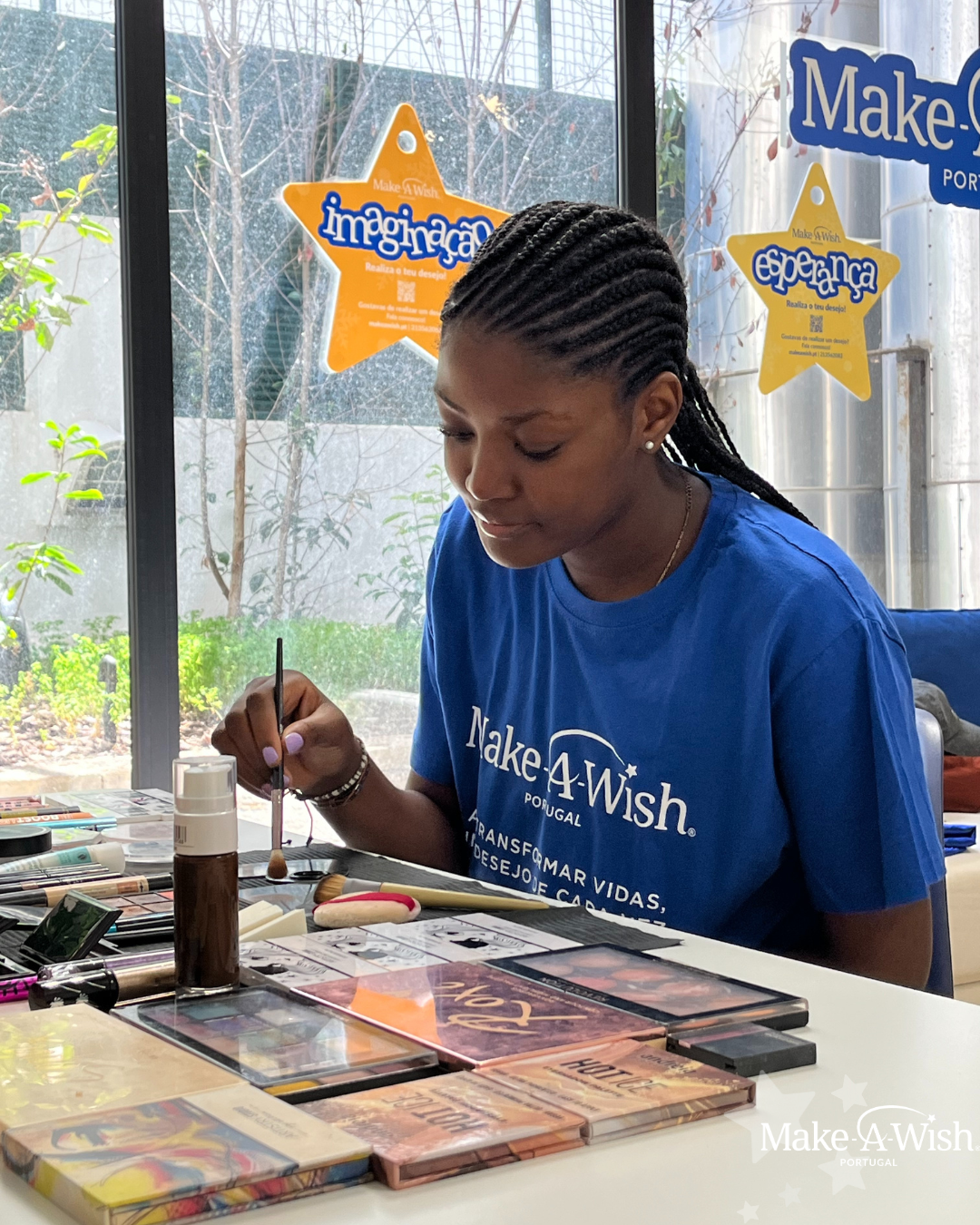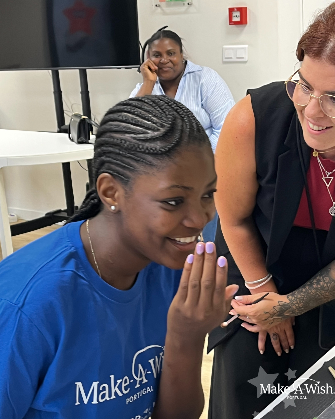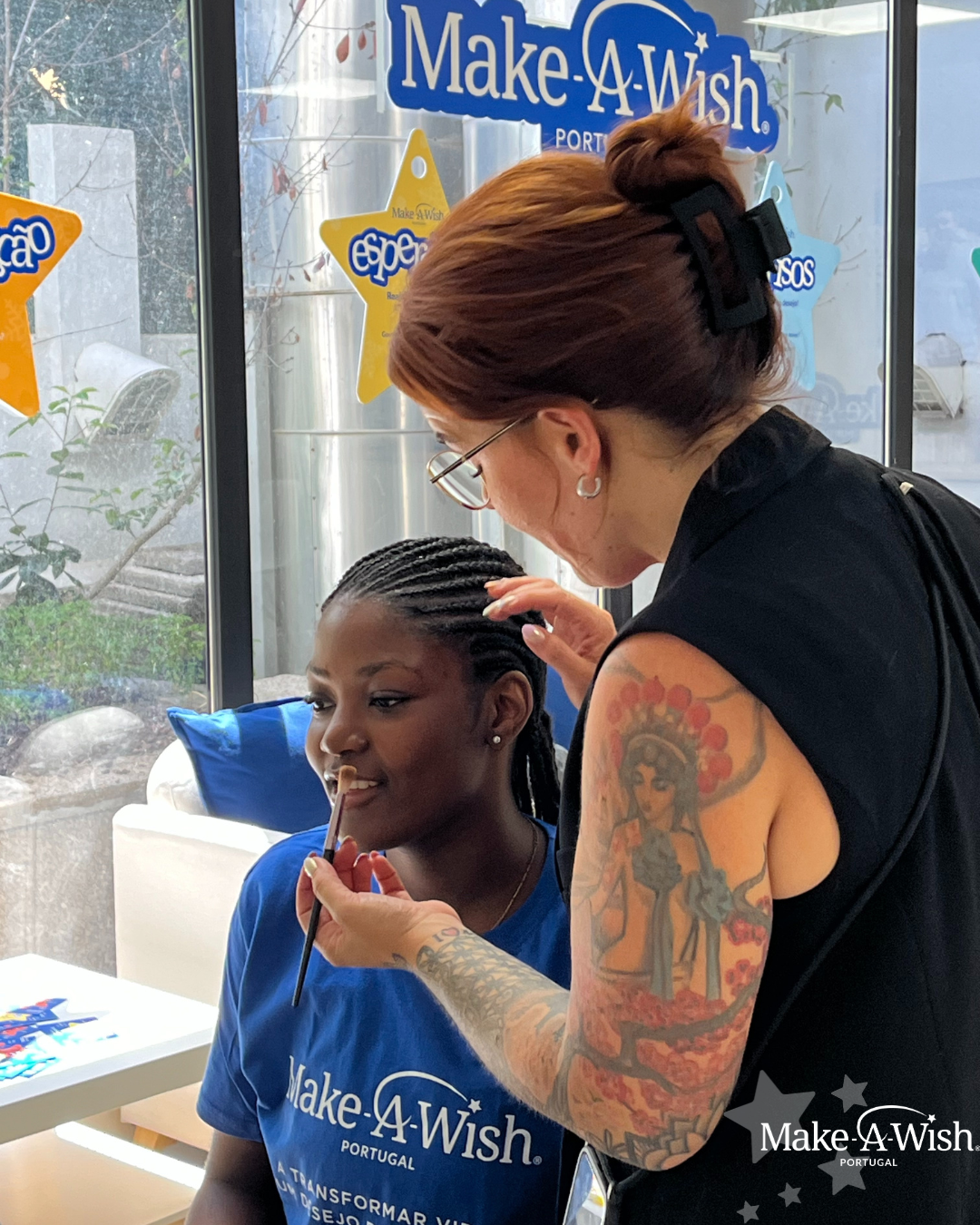 No fim do almoço, continuaram o seu passeio e o caminho guiou-os a um lugar muito especial: o escritório da Make-A-Wish. Lá, a Eliane tinha uma grande surpresa à sua espera! Ao descobrirem a paixão da Eliane por maquilhagem, os voluntários surpreenderam-na com um workshop da maquilhadora Inês Lapa. A Eliane ficou radiante e vibrou com cada minuto. Prestou atenção a todas as dicas e sugestões da Inês e o resultado foi incrível! A Eliane ficou ainda mais bonita e com uma vontade gigante de experimentar novas maquilhagens e continuar a explorar este mundo da beleza.