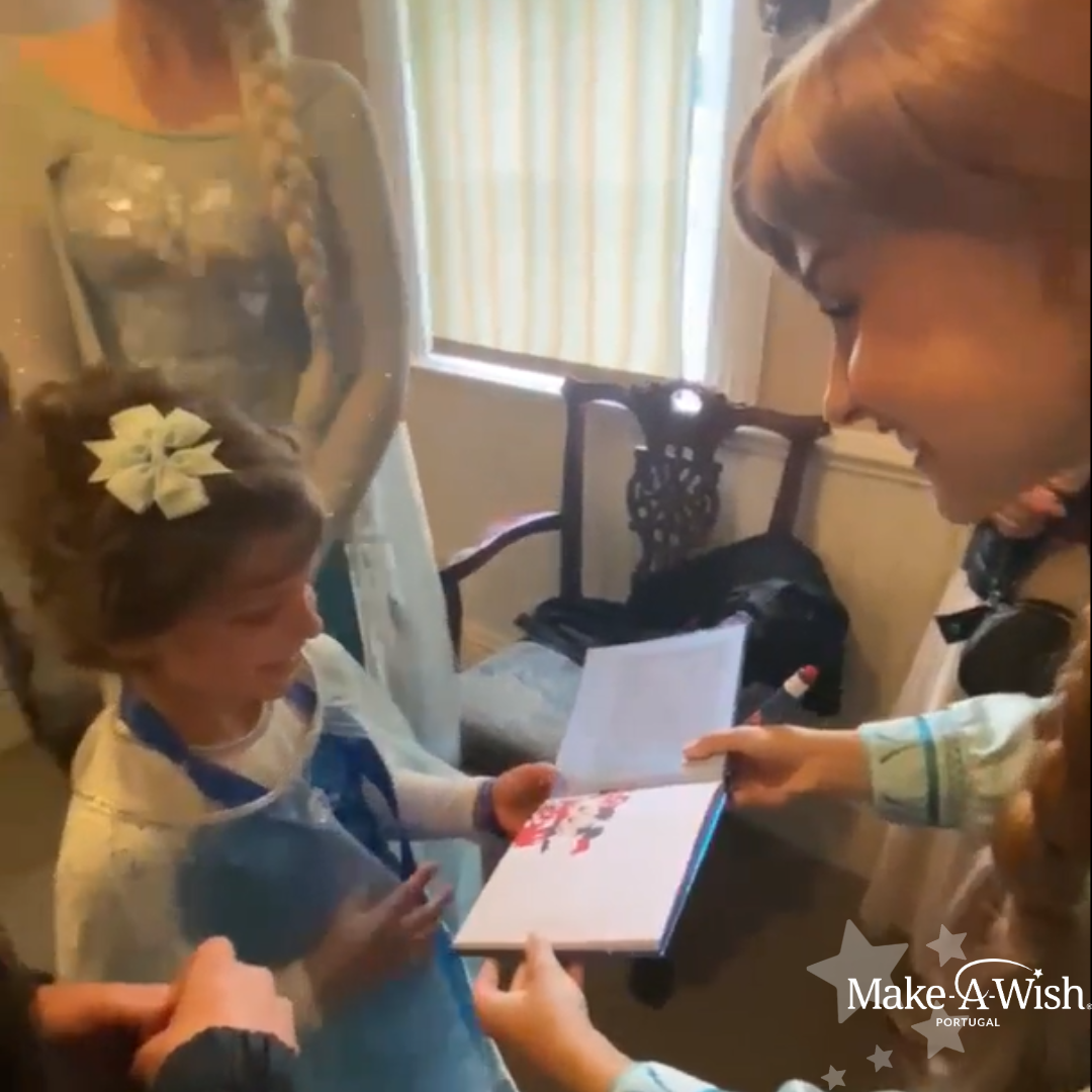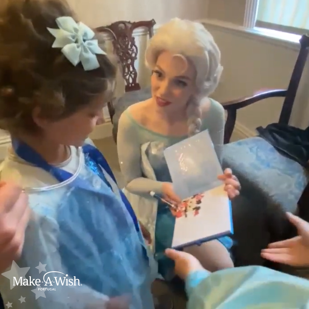O momento mais especial foi sem dúvida o encontro com as princesas Elsa e Ana, que receberam a Margarida como se fossem amigas de longa data! Mostraram à Wish Kid como rodopiar com a incrível capa do vestido da Elsa, assinaram o seu livro de autógrafos e partilharam um abraço carinhoso. A Margarida sentiu que estava a viver um sonho!
