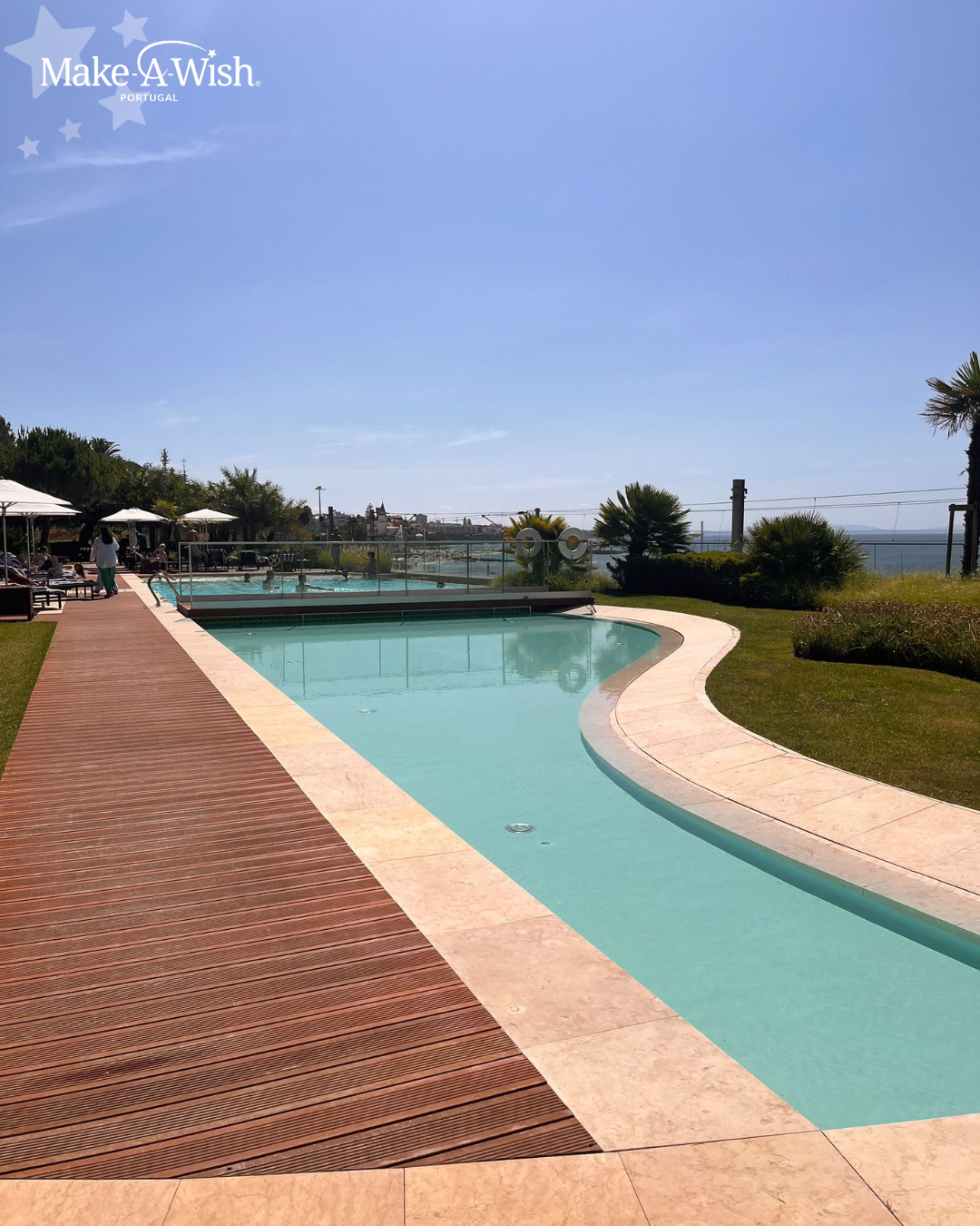Primeira paragem – Hotel InterContinental Cascais-Estoril, para uma manhã de acrobacias e brincadeiras na piscina! Rodeada das suas pessoas favoritas, a Swane divertiu-se imenso e transformou-se num verdadeiro peixinho dentro de água. Ainda houve tempo para jogar às cartas e, claro, para um delicioso almoço, com um gesto solidário. Um dos hóspedes do hotel conhecia e admirava o trabalho da Make-A-Wish e disponibilizou-se para oferecer o almoço ao grupo! Ninguém ficou indiferente à felicidade da Swane!