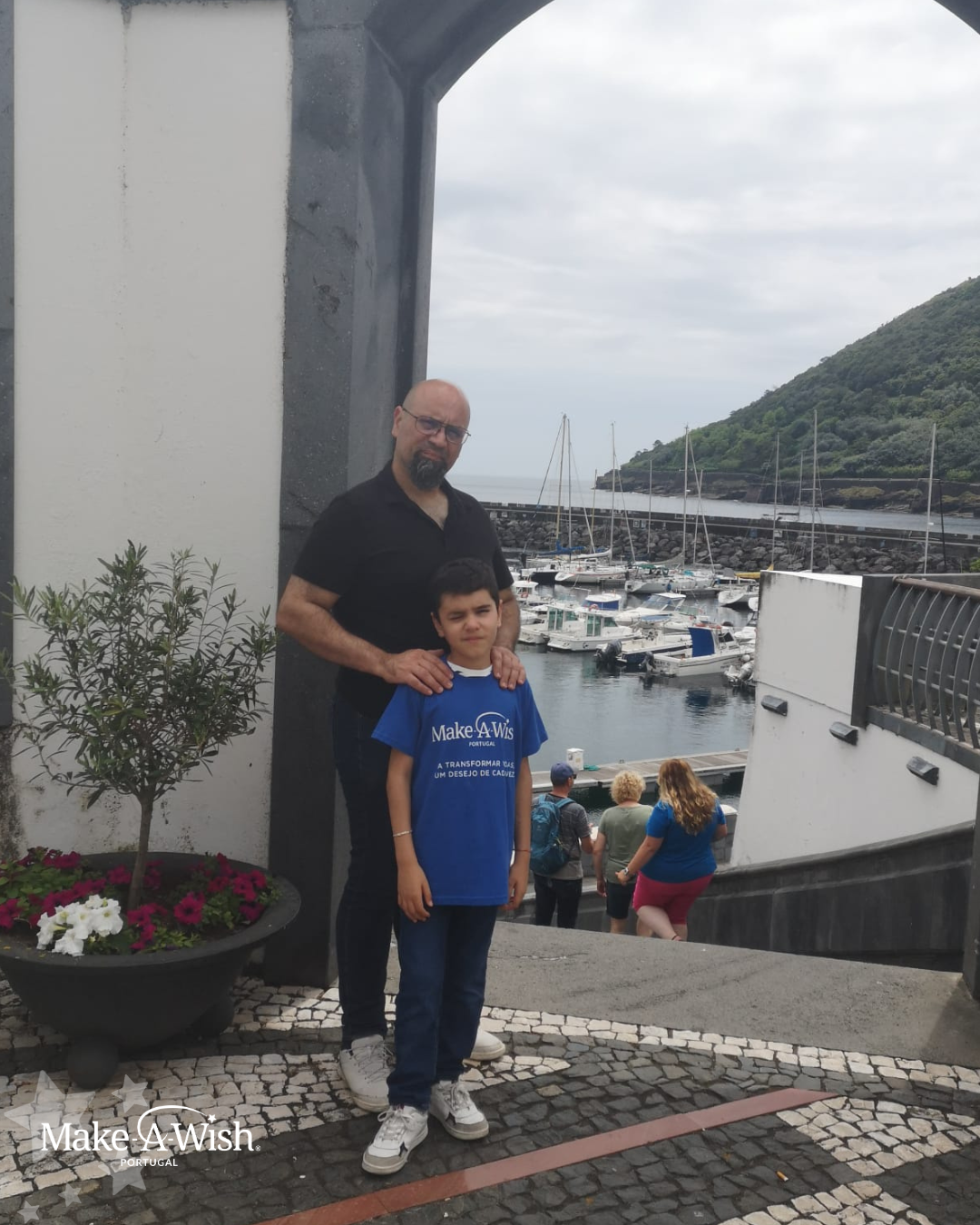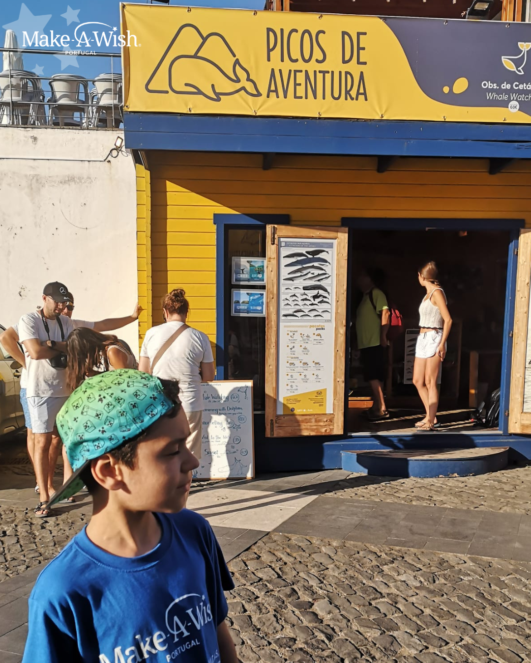 “O dia chegou… a aventura começou! Estávamos todos ansiosos pela aventura! Enquanto esperávamos pelo contacto com o criador do Goji para conhecer a família dele, fomos conhecendo a Ilha. Passamos grande parte do tempo a explorar! O André estava muito feliz e agradecido à Make-A-Wish. Para além de estar planeado conhecer a família do Goji, ainda havia uma grande surpresa para o André – “Os Picos da Aventura” – uma visita guiada para ver golfinhos e baleias. Tanta felicidade e emoção!”