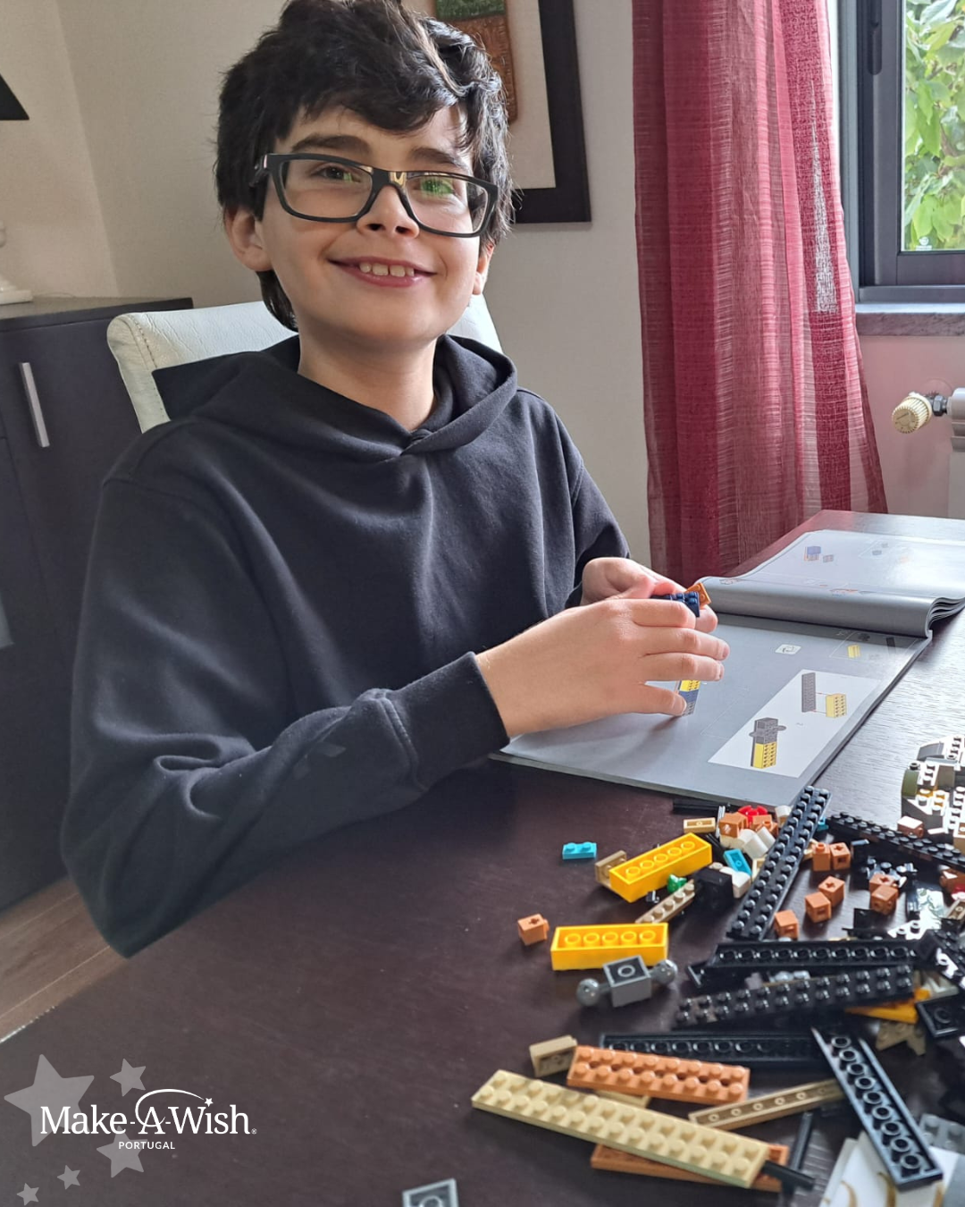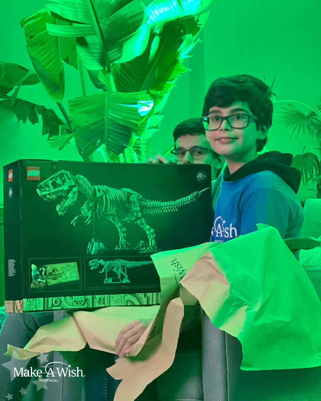 O Filipe é um jovem com uma grande paixão por Legos! Adora passar o seu tempo a desafiar-se com novas construções e colecionar as diferentes peças. Assim, quando surgiu a oportunidade de realizar o seu desejo Make-A-Wish, sabia que teria de ser algo ligado à sua paixão. Era a oportunidade perfeita para juntar à sua coleção o Lego mais desejado da sua wish list: o fóssil de T-Rex, com mais de 3000 peças!