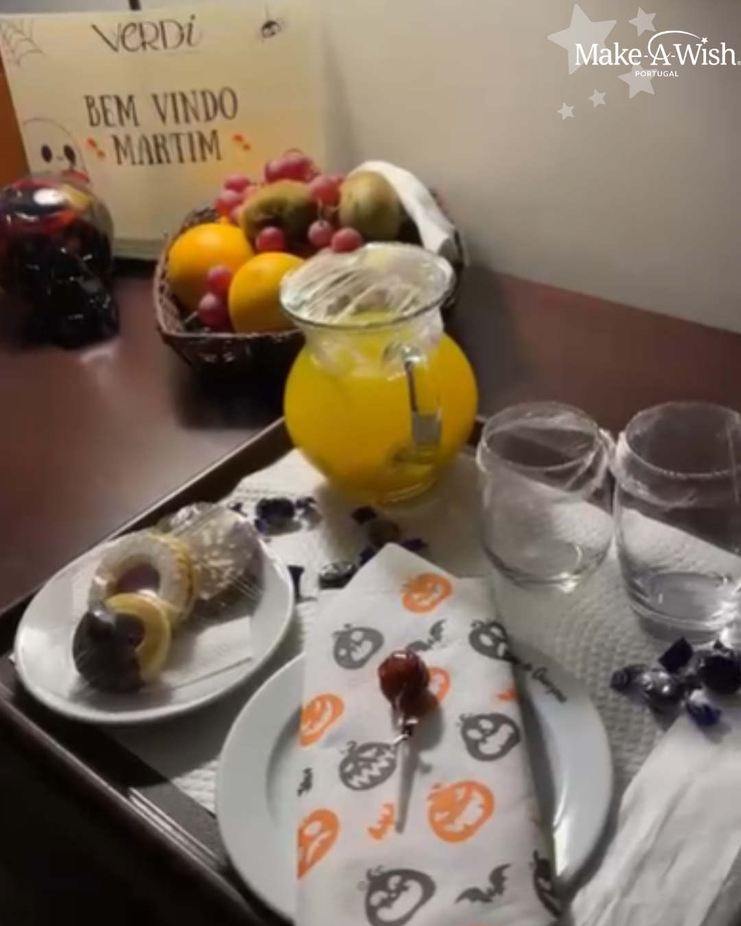 Este dia calhou ainda numa das suas datas favoritas – o Halloween! As voluntárias Make-A-Wish não podiam deixar esta data passar em branco e o Martim regressou a casa cheio de doces e com um novo disfarce. Ao regressar ao hotel, entrou também no mundo Halloween e adorou cada detalhe! O fim perfeito para um dia inesquecível!