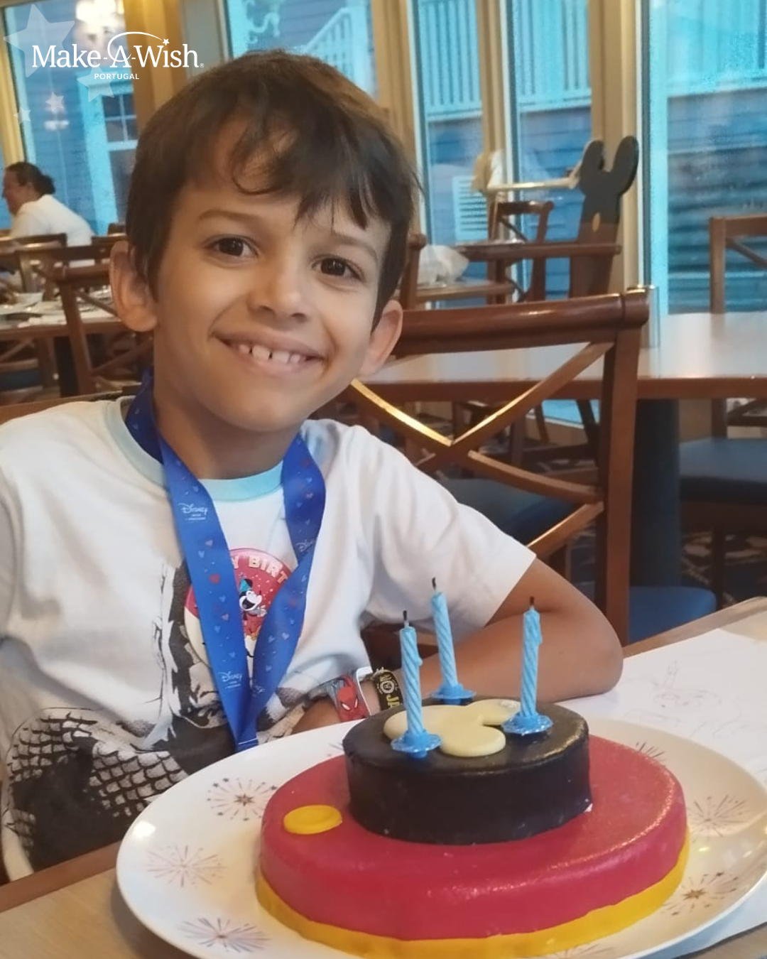A realização do seu desejo foi duplamente especial, porque calhou no fim de semana do seu aniversário. Viajar até ao mundo mágico da Disneyland Paris foi a melhor prenda que o Rafael podia receber! Foram dias de imensa alegria para toda a família – aventuraram-se nas diversões e montanhas-russas, visitaram os parques temáticos, experimentaram diferentes restaurantes e ainda tiveram a sorte de conhecer muitas personagens.