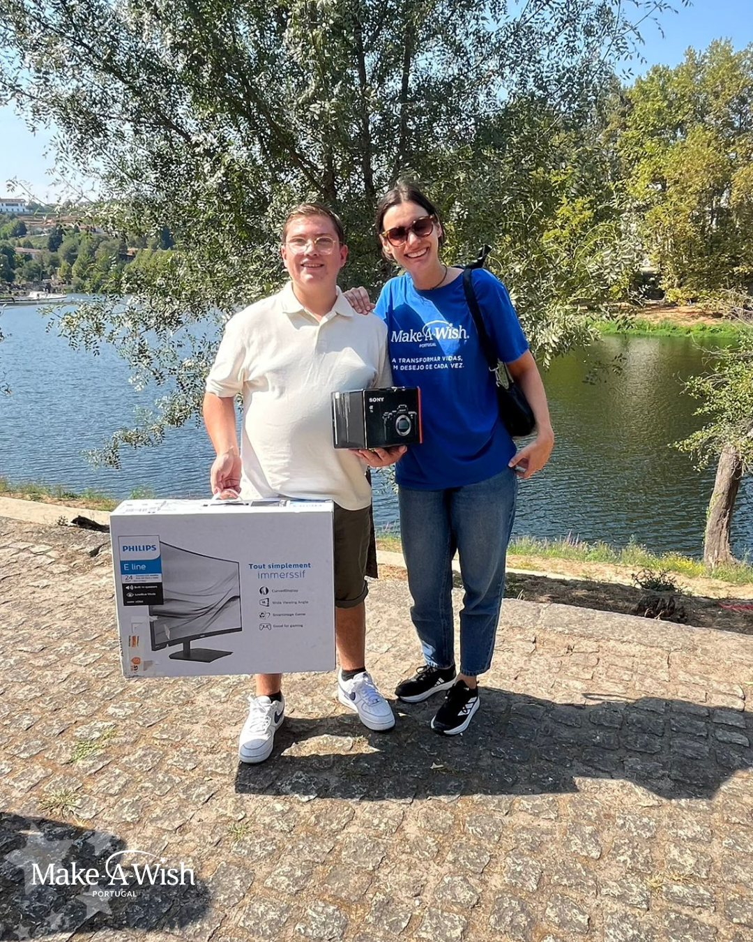 Durante a tarde, o grupo aproveitou para passear pelo parque e aproveitar o dia solarengo. Foi aqui que o Tiago foi surpreendido com o tão desejado equipamento para a sua loja! Com um sorriso gigante e um brilho nos olhos, o Tiago só conseguia dizer “Obrigado” vezes sem conta. Não podia estar mais feliz!
