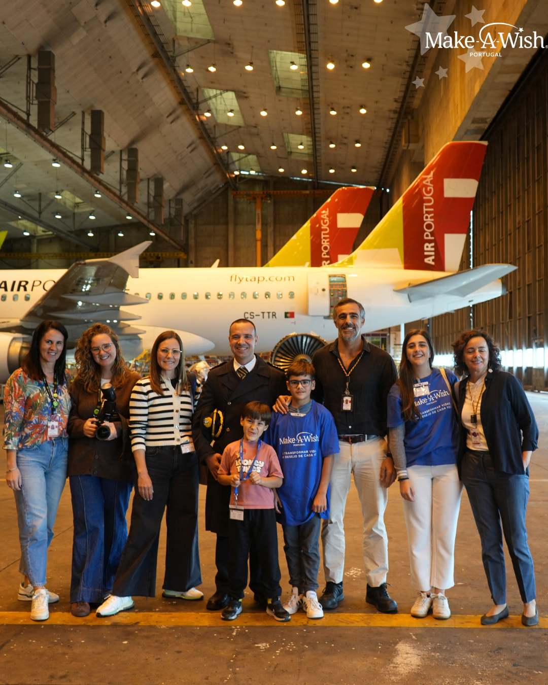 Quando surgiu a oportunidade de realizar o seu desejo Make-A-Wish, o Tiago soube logo que teria de ser algo ligado ao universo da aviação. E, assim, surgiu a ideia perfeita: visitar o hangar da TAP e ver de perto os seus aviões favoritos!