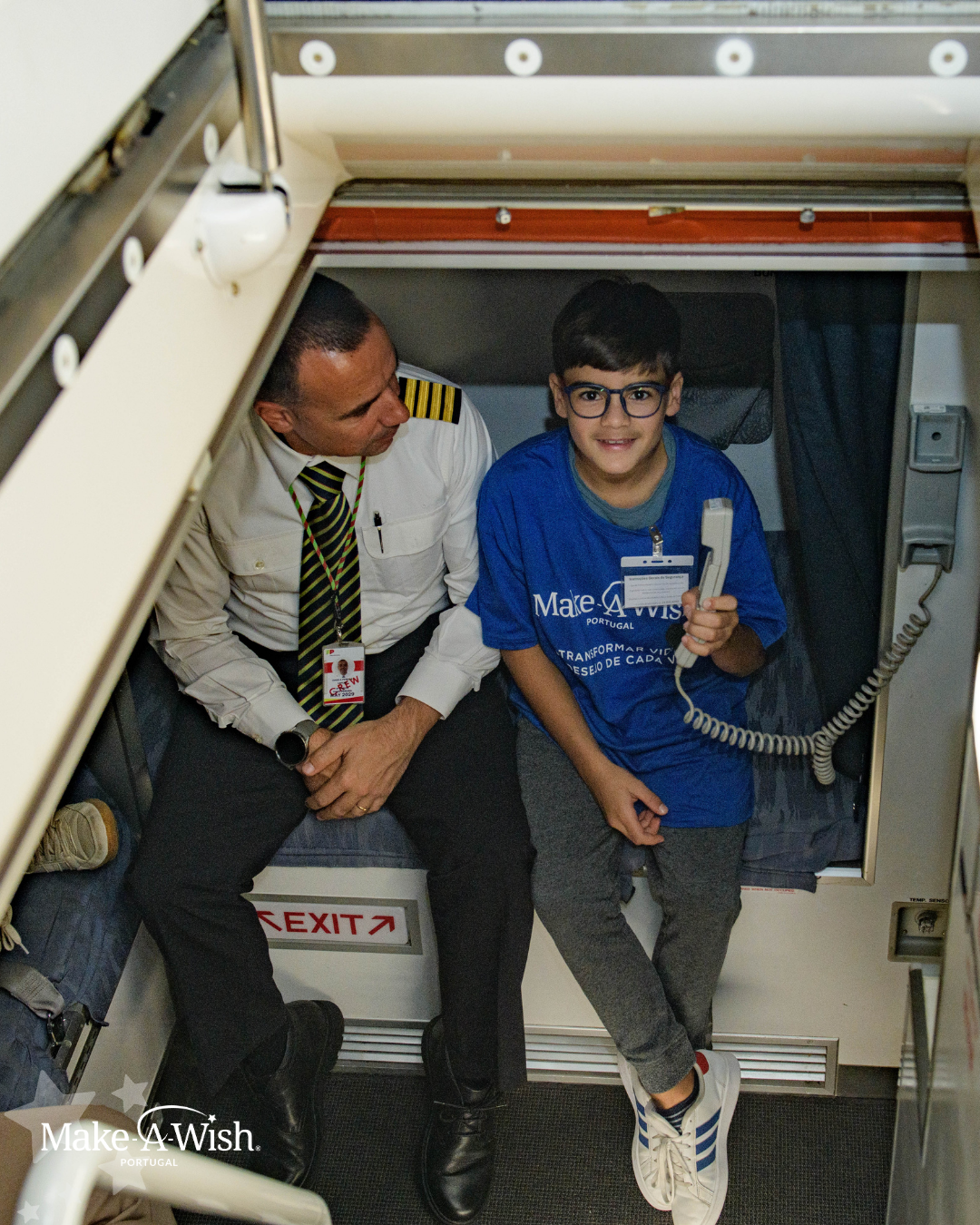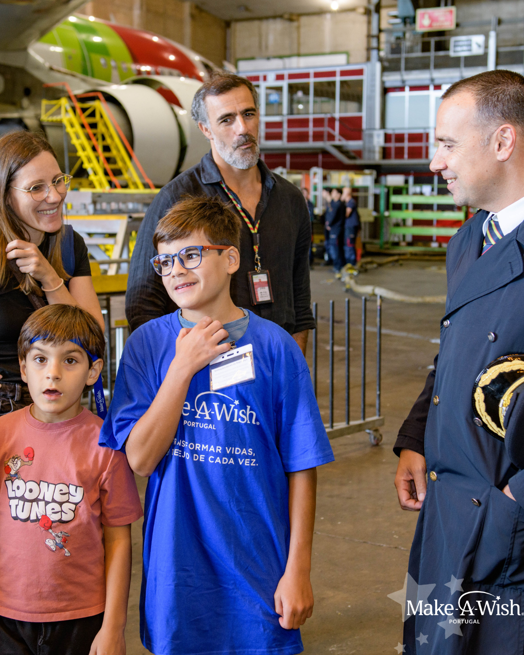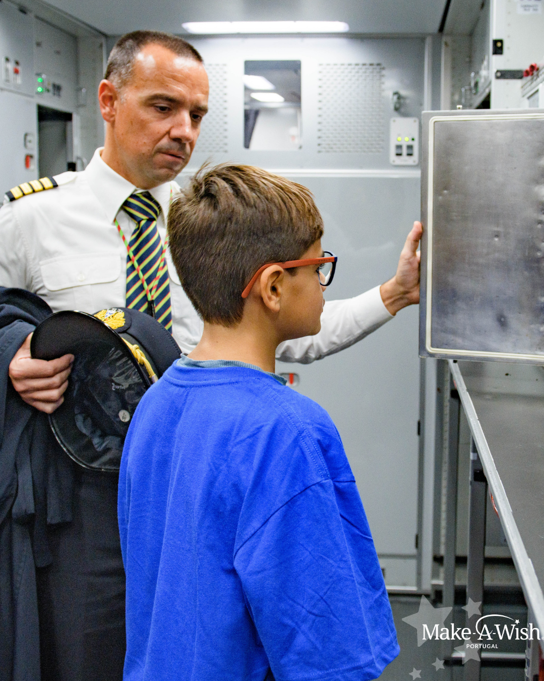 Acompanhado do Comandante Tiago Pereira e do Engenheiro Diogo Pedrosa, o Wish Kid explorou os diferentes aviões, esclareceu todas as suas dúvidas, partilhou curiosidades e até conseguiu ver o seu avião preferido a levantar voo!