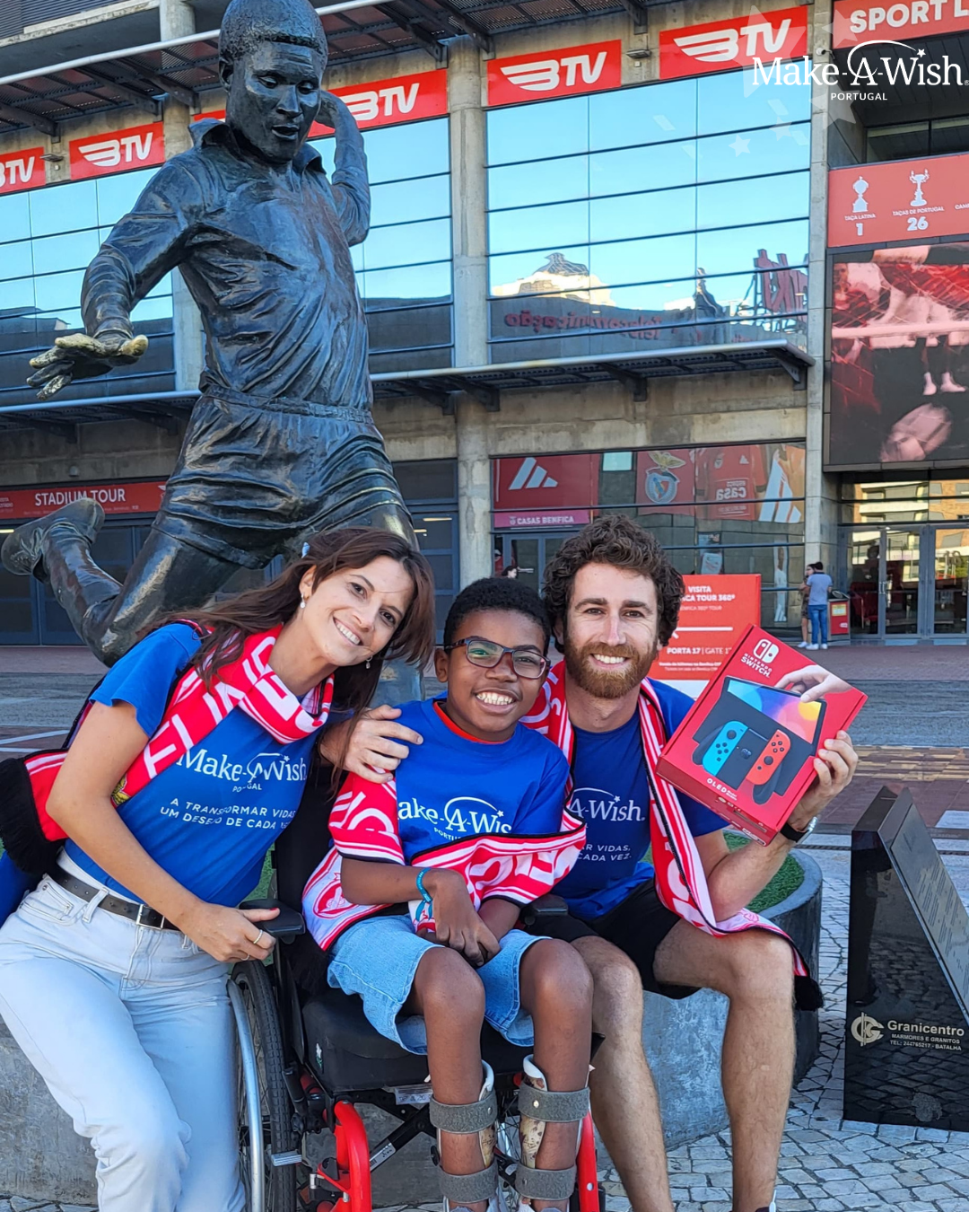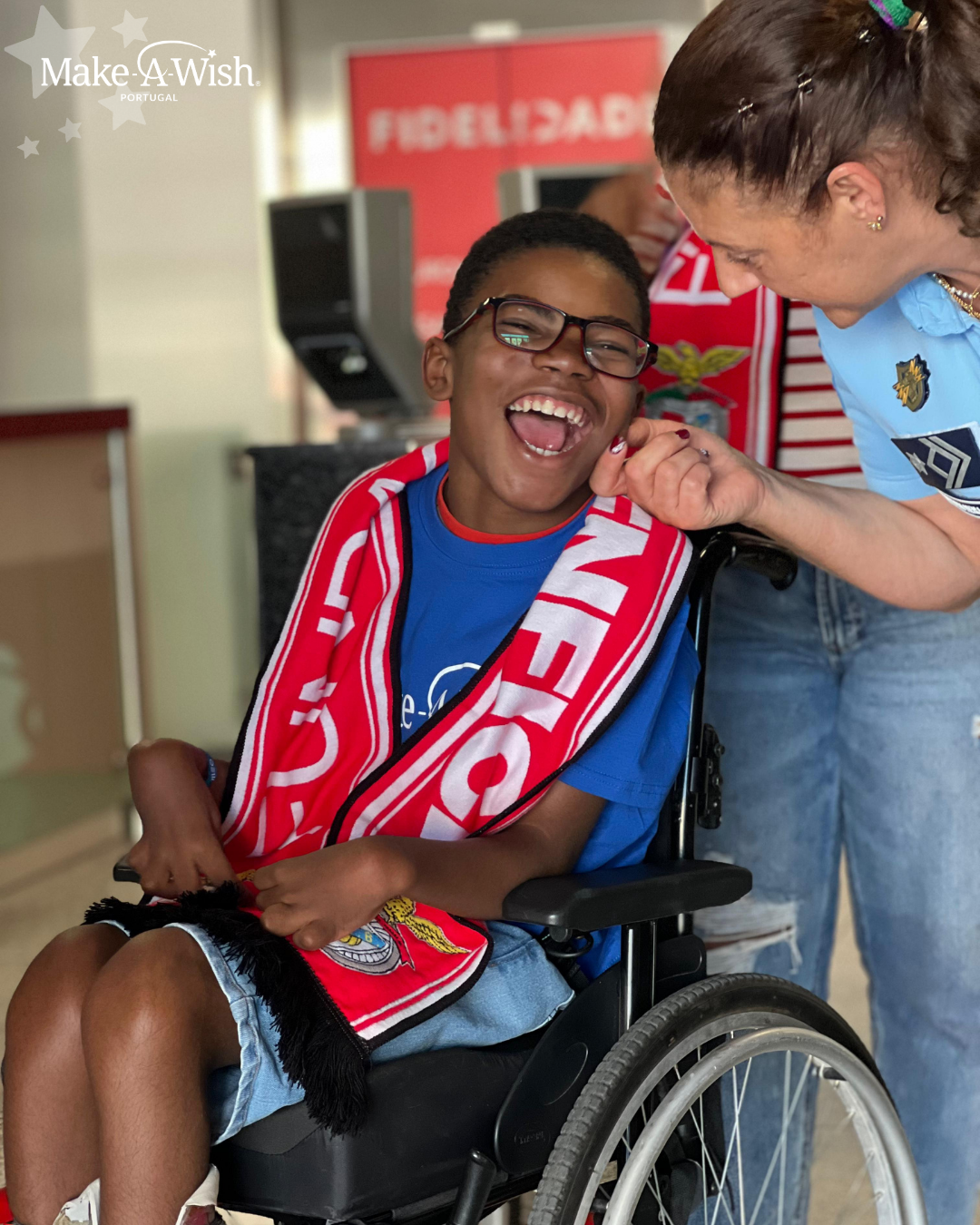 Já não cabia em si de tanta felicidade, mas a missão ainda não tinha terminado. Os voluntários Make-A-Wish tinham mais surpresas planeadas para o Capitão: uma visita guiada ao Estádio e Museu do Benfica, o seu clube do coração! Lá, o Weltson teve a oportunidade de viver uma verdadeira experiência à campeão. Percorreu os bastidores do estádio, conheceu a mítica Águia Vitória, viu as camisolas que fizeram história e, com a ajuda do guia da visita, ficou a conhecer melhor a história e as conquistas de muitos dos seus jogadores preferidos.