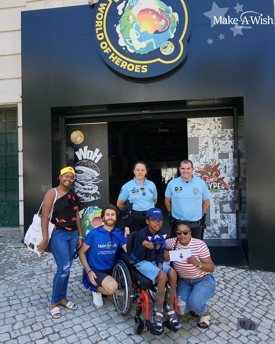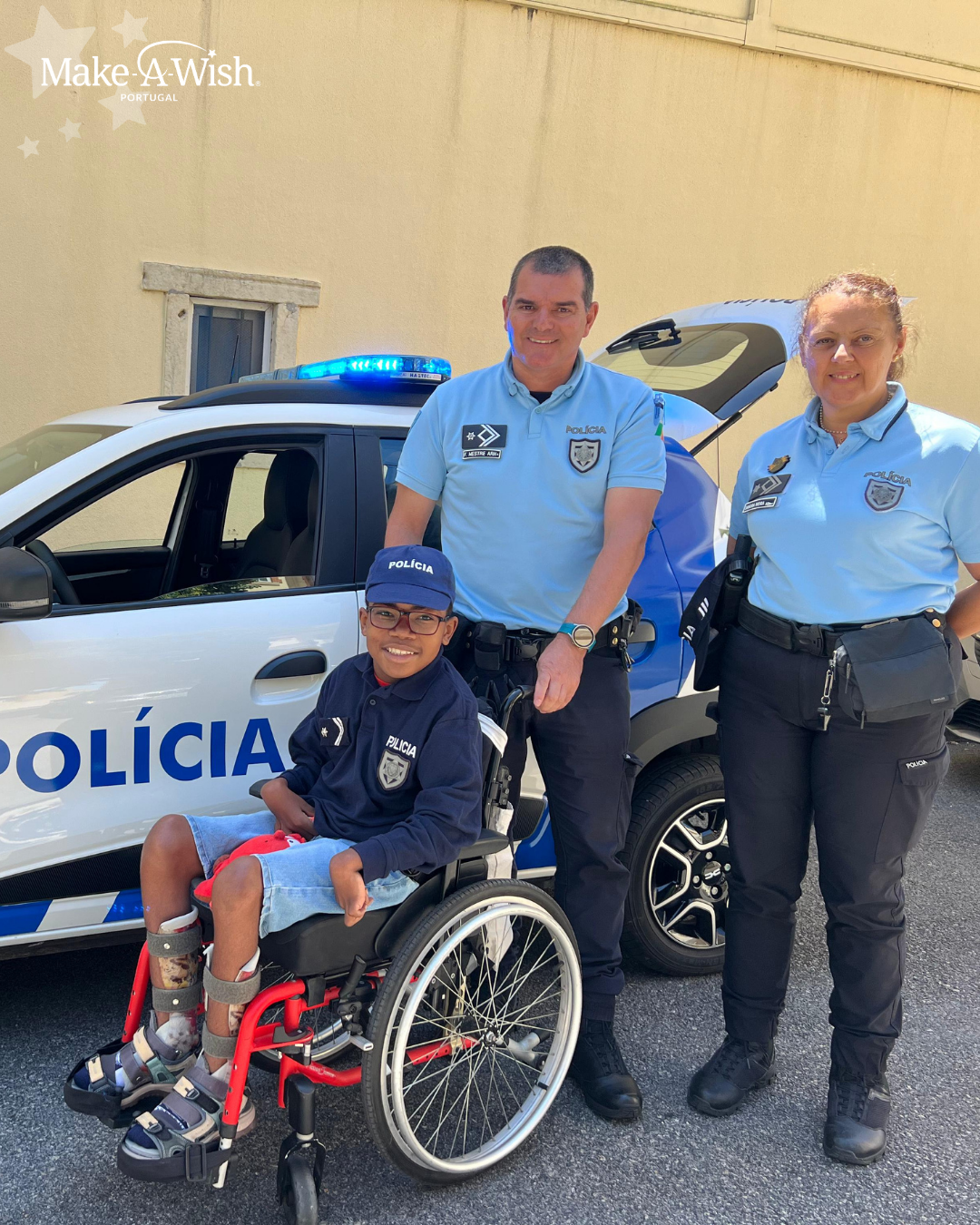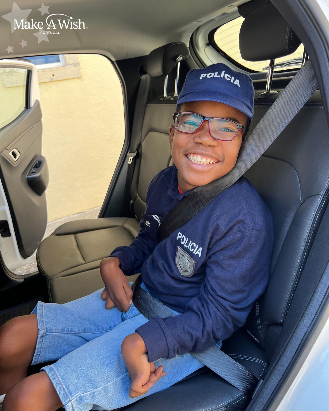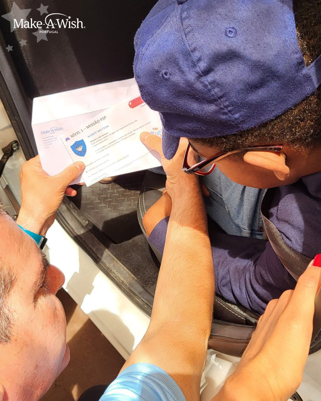 Acompanhado pela sua mãe, irmã e voluntários, a “Missão Capitão Weltson” arrancou com uma surpresa incrível! Assim que saiu de casa, o Wish Kid deparou-se com dois agentes e um carro da PSP à sua espera – esta seria a sua companhia e boleia para o resto do dia. O Weltson ficou radiante e fez logo um pedido muito especial: ir no carro da PSP até à sua escola, para poder mostrar aos seus colegas a aventura incrível que estava a viver!