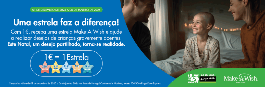 Até 6 de janeiro de 2026, todas as lojas Pingo Doce do país terão disponíveis as Estrelas de Natal Make-A-Wish. Cada estrela representa um donativo de 1€, que contribuirá diretamente para a concretização de desejos de crianças e jovens apoiados pela Make-A-Wish Portugal.